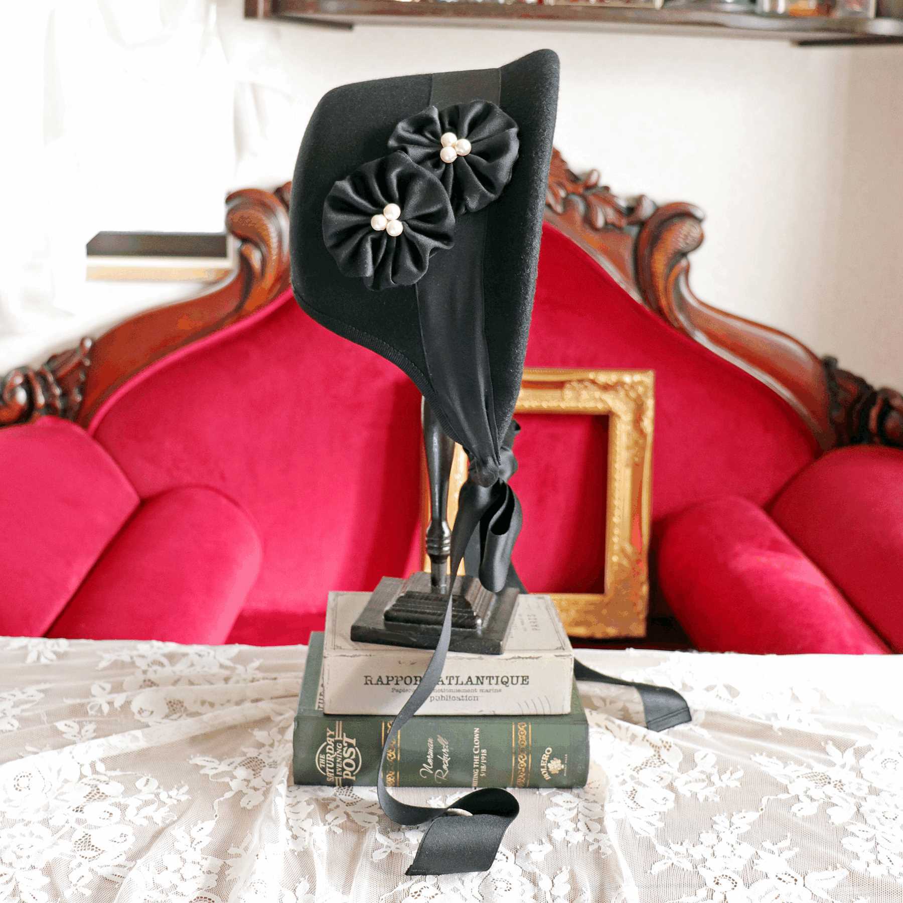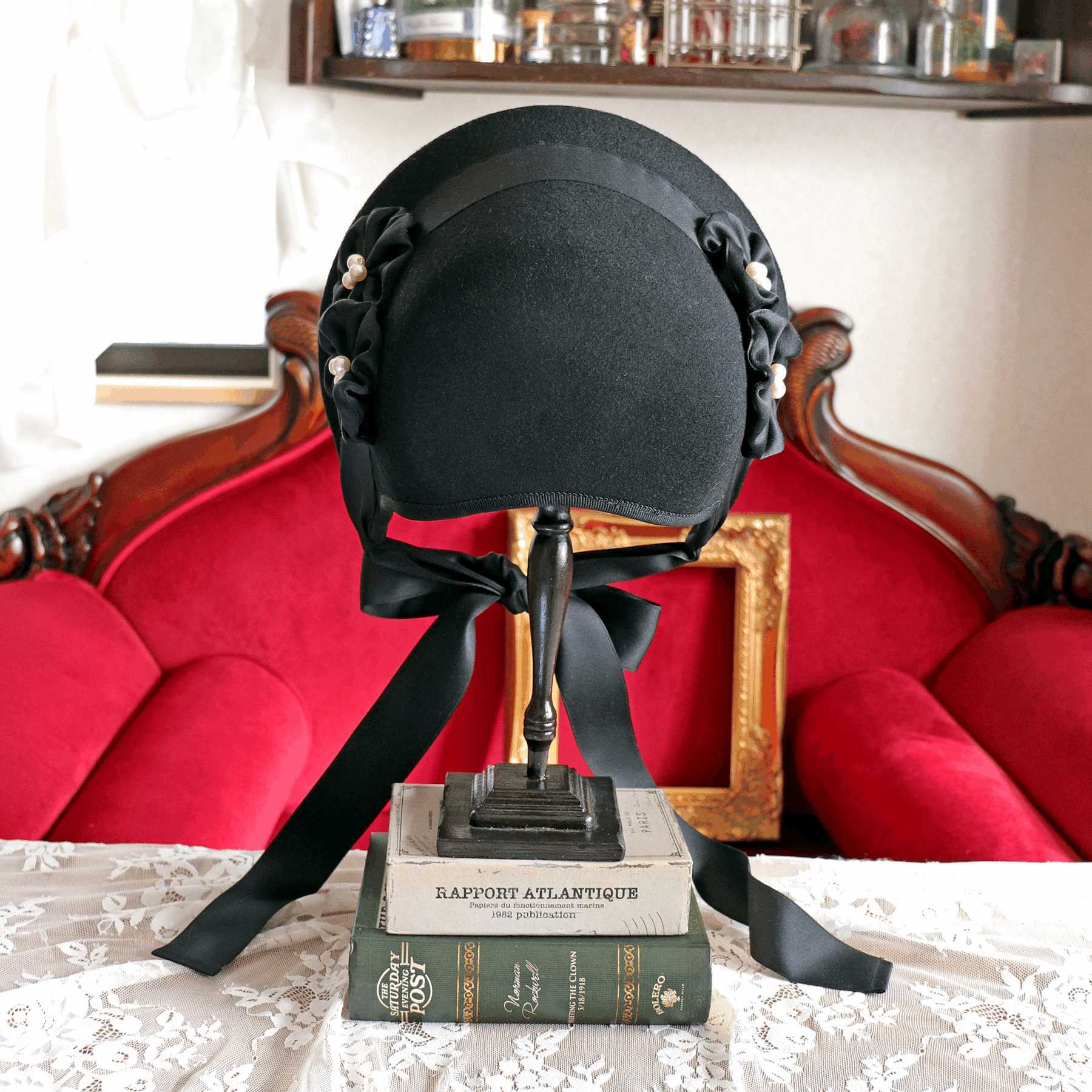1920年代のモダンガールファッションをボンネットに落とし込んだ作品です。