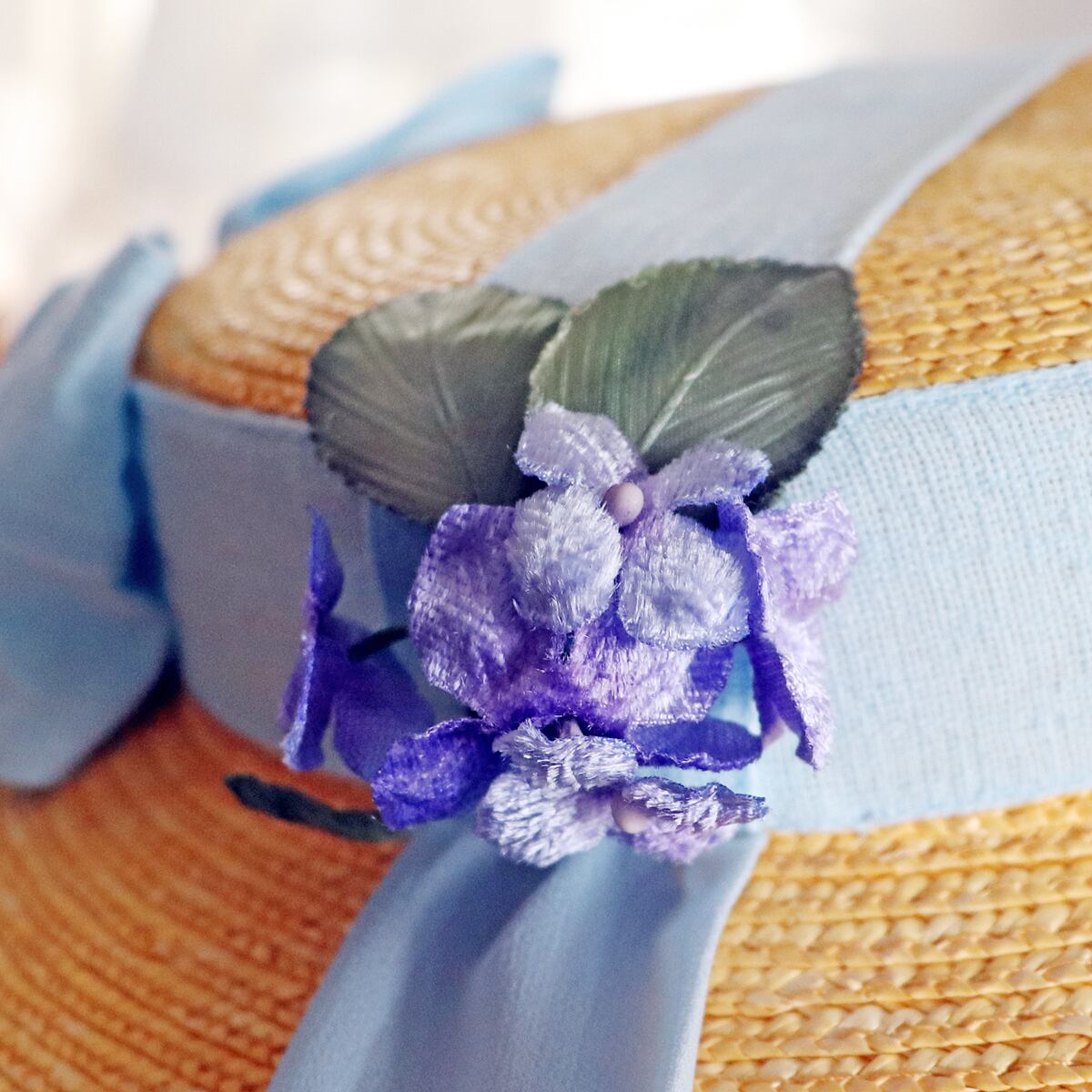 ・使用しているリボンは繊細は材質のため、本体の麦わらやブローチ等への引っ掛かりにご注意ください。